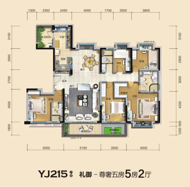 kaiyun官方-2138㎡绝妙户型:五卧+纵透餐厨+围房南阳台的设计